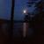 Overlooking the Gulf of Mexico, the moon struggles to show behind a low cloud cover.
