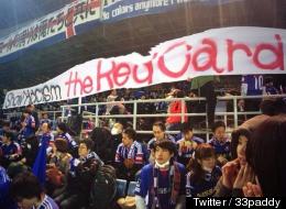 横浜マリノスサポーターが横断幕「差別にレッドカードを」