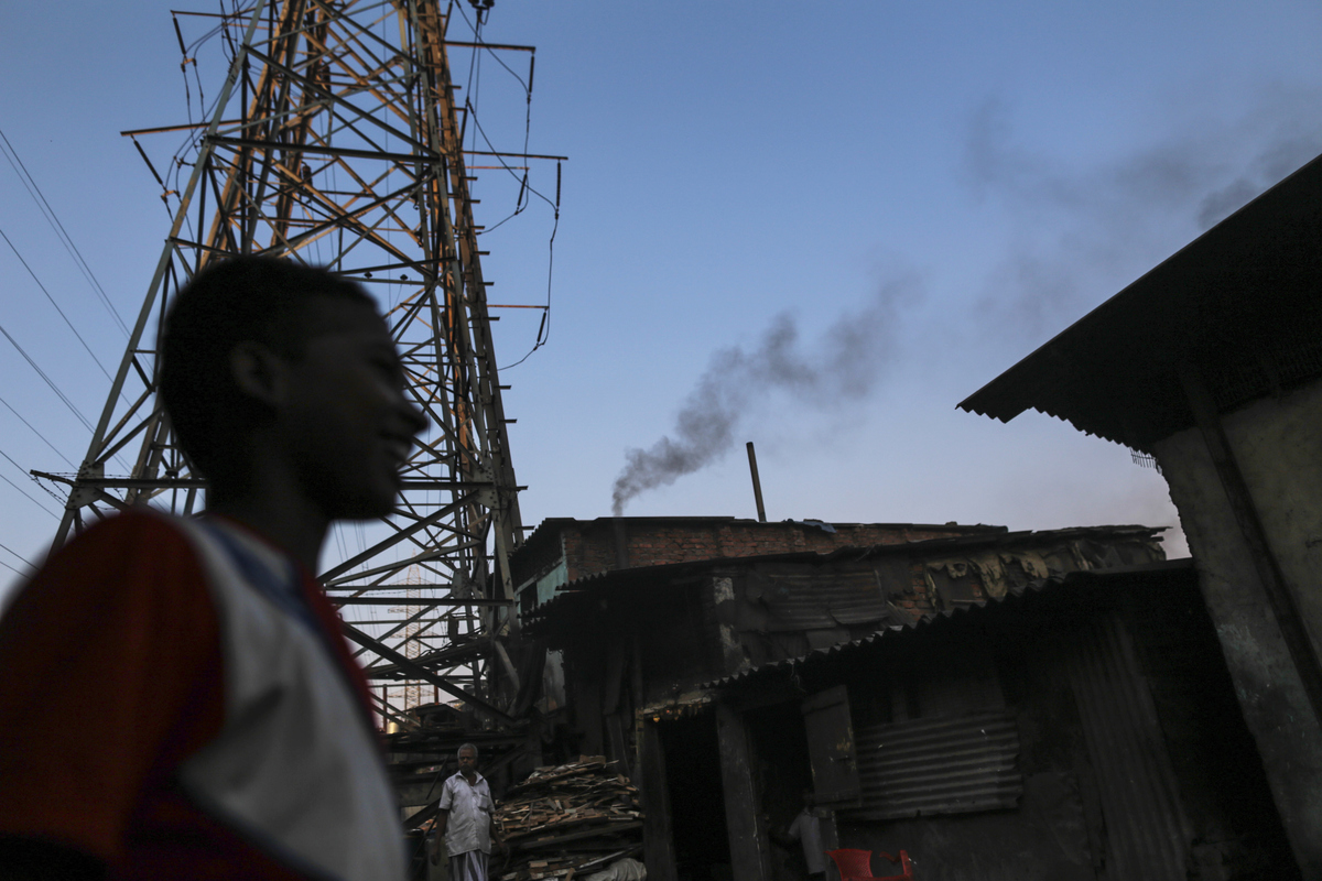 ガバンディ地区のスラムにある工場から立ち上る煙。2015年3月11日撮影。 -