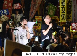 Demonstrators stage a protest against Prime Minister Shinzo Abe's controversial security bills in front of the National Diet in Tokyo on September 16, 2015. Thousands took to Japan's streets on September 16 to protest at laws expected to be passed this week that could see troops fight overseas for the first time in 70 years, despite mass public opposition. AFP PHOTO / KAZUHIRO NOGI (Photo credit should read KAZUHIRO NOGI/AFP/Getty Images)