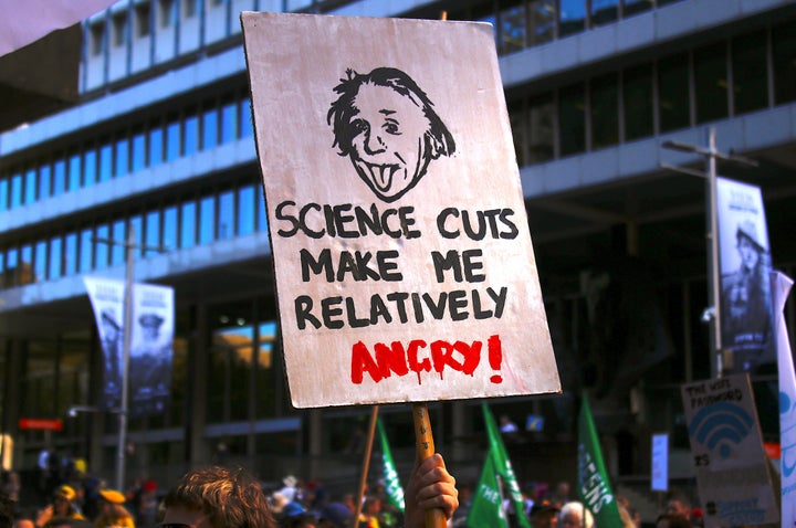 ロンドンのマーチ・フォー・サイエンスに集まったデモ参加者。/ DANIEL LEAL-OLIVAS VIA GETTY IMAGES