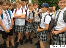 Boys at Isca Academy in Exeter wear skirts to school in protest at not being allowed to wear shorts in hot weather. pic.twitter.com/XHrffnSQEN