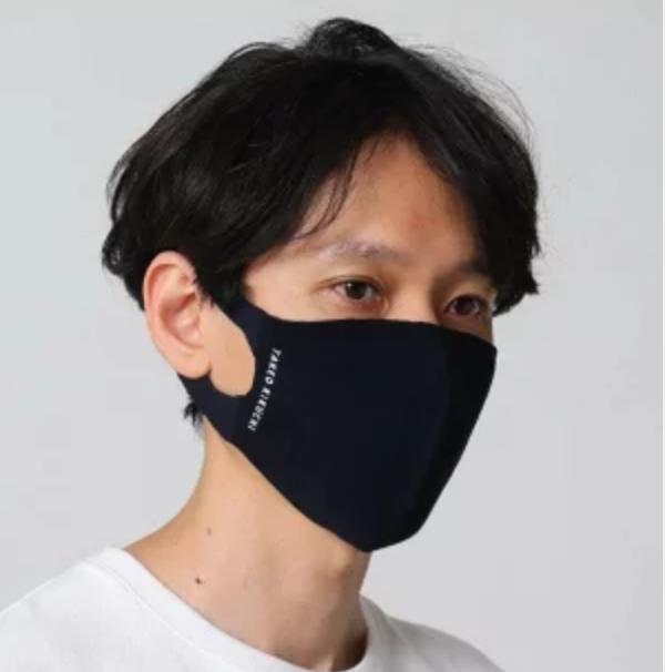 はたらくヒトを応援する「BIZ MASK」。洗えるスーツ素材「TRABEST」を使用し、ビジネスシーンにもしっくりなじむマスクです。裏側には吸水速乾のメッシュを使用、間にはナノレベルのファイバーによる「YAMASHINNANOFILTER」を使用。フィルター機能を強化しています。