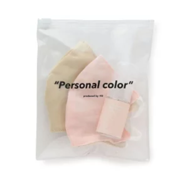 パーソナルカラーに合ったマスク2枚と除菌スプレーのセット。ブルーベースの方用にはラベンダー系、イエローベースの方用にはピンク系のマスクが入っています。2色セットなので、その日の気分やコーディネートに合わせたマスクのカラーコーデが可能。