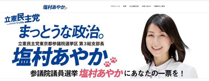 塩村文香氏の公式ホームページより