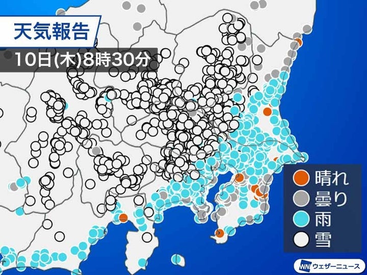 今日10日(木)は関東から甲信を中心に広い範囲で雪や雨が降っています。