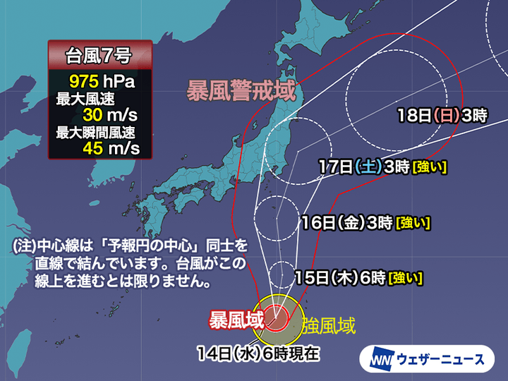 ▼台風7号 8月14日(水) 6時