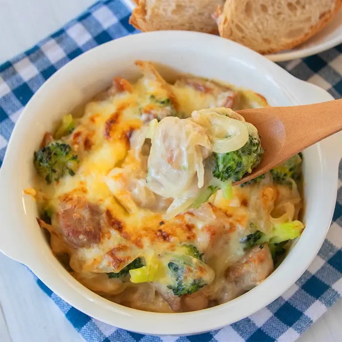 野菜たっぷりで罪悪感なくパクパク食べられる!ブロッコリーと玉ねぎ、鶏肉を使ったグラタンレシピをご紹介します!鶏肉と玉ねぎはフライパンで炒めてしっとりと♡ブロッコリーはレンジで加熱し、ホワイトソースは市販のものを使うので時短できちゃいます!1人分の量で作れるのでとっても便利です。家族で食べたい方は、倍量にしてオーブンで10分ほど長く焼いてくださいね♪