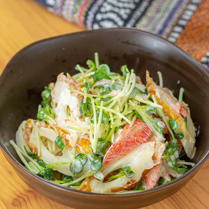 隠し味はお寿司でおなじみのアレ!?「ちくわとカニカマとかいわれ大根のガリマヨ和え」のレシピを紹介します♪「ガリ」を加えることで甘みと爽やかな風味がプラス!ちくわとカニカマで食べ応えバッチリな、かいわれ大根が無限に食べられる沼レシピですよ♪