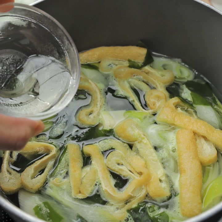 作り方はいつも通りでOK!みそを入れる前に「みりん(1人分小さじ1)」を加えて一煮立ちさせ、アルコールを飛ばします。火を止めてみそを溶き入れたら、完成!