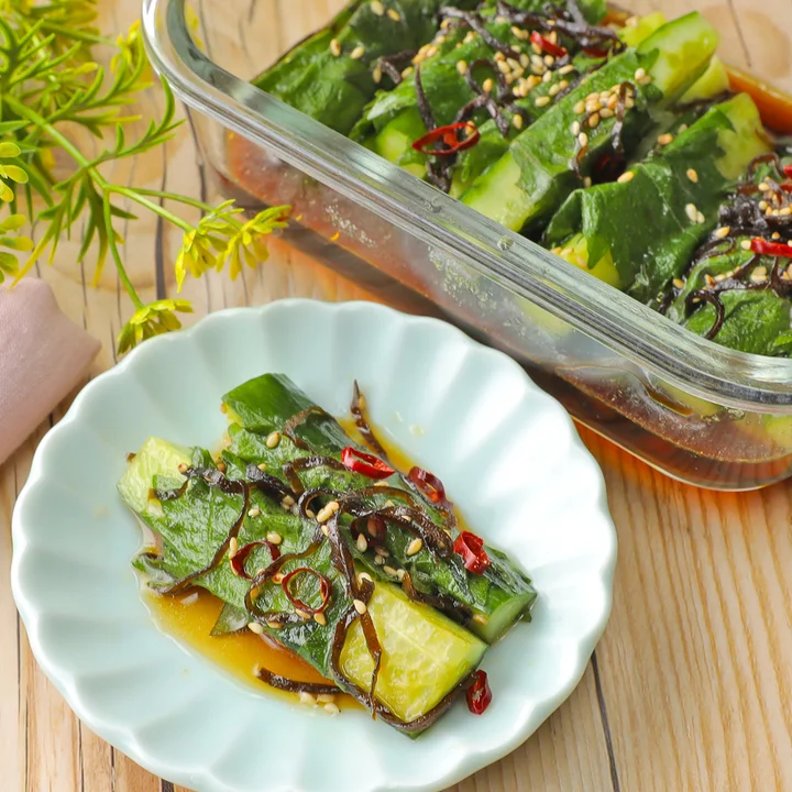 シャキッとしたきゅうりに大葉をくるりと巻いて、ごま油香る甘酢だれに漬けるだけの簡単作り置きレシピをご紹介します。赤唐辛子のピリ辛と塩昆布のうま味がアクセントになって、さっぱりしながらもしっかり味。この夏何度も作りたくなる「きゅうりの大葉巻き漬け」ですよ!サッと手軽に作れるので、あと一品にやおつまみに、暑い日にぴったりの副菜です。