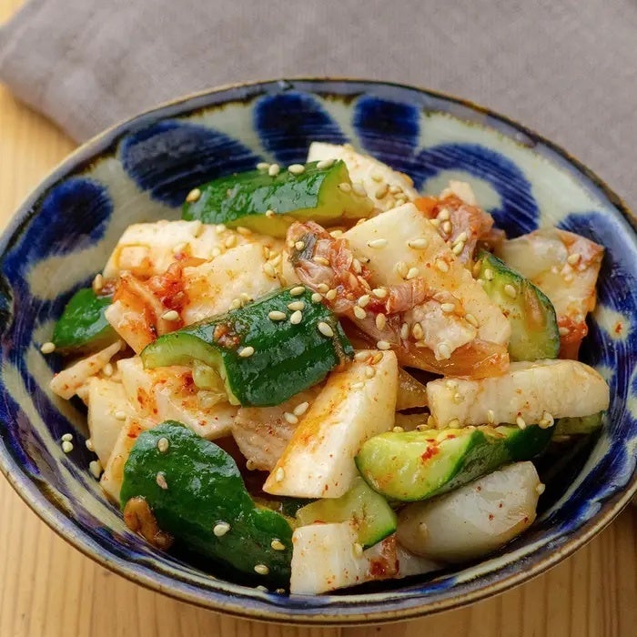 きゅうりと長芋があったらコレ!箸休めやおつまみにぴったりな「きゅうりと長芋のキムチ和え」のレシピを紹介します♪切って和えるだけだからとっても簡単!キムチ風味のピリ辛仕立てで一口食べたら箸が止まりませんよ♪