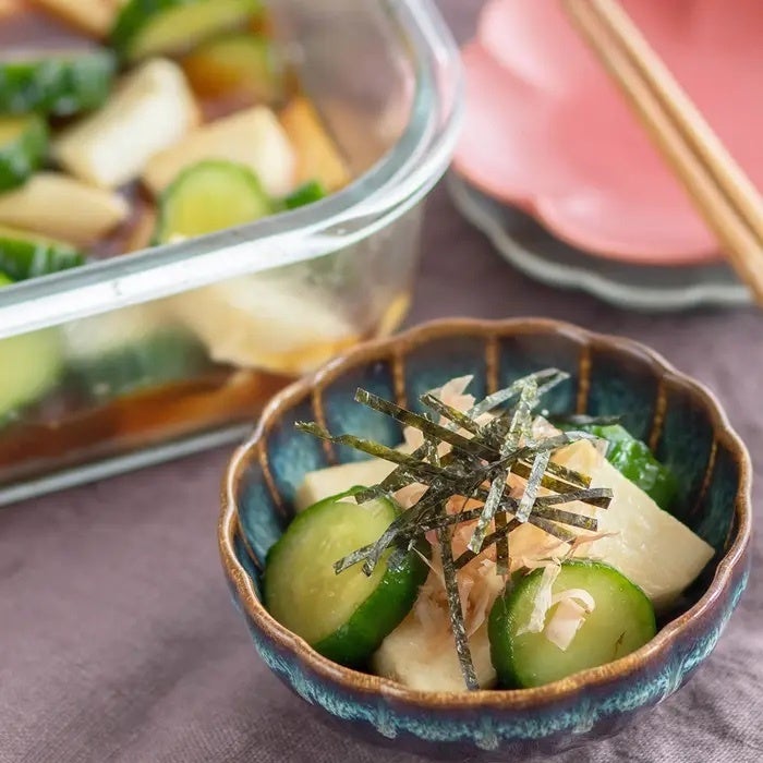 長芋ときゅうりをめんつゆ&わさびのたれで漬けるだけの簡単副菜。シャキッとした食感に、わさびとしょうがのピリッと感がいいアクセント。冷蔵庫で冷やしておけば、さっぱり食べられて、ご飯のお供にも、おつまみにもぴったり。火を使わずに作れるから、暑い日や忙しいときにも助かる一品です。