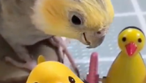 オカメインコのヤキモチ全開な姿が、多くの人の笑顔を呼んでいます。