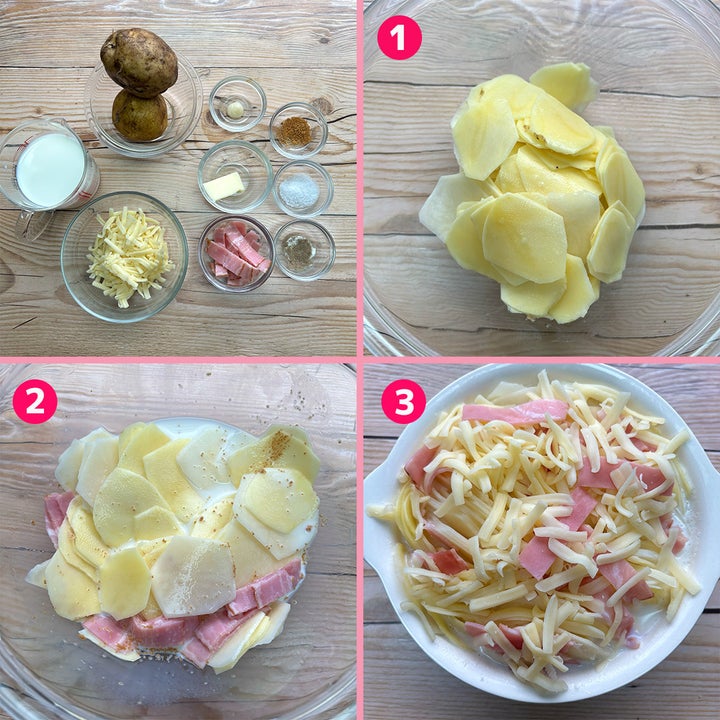 薄くスライスしたじゃがいもをレンジでチンして火を通し、トースターでこんがり焼き上げるだけの「じゃがいものミルクチーズ焼き」のレシピをご紹介します!