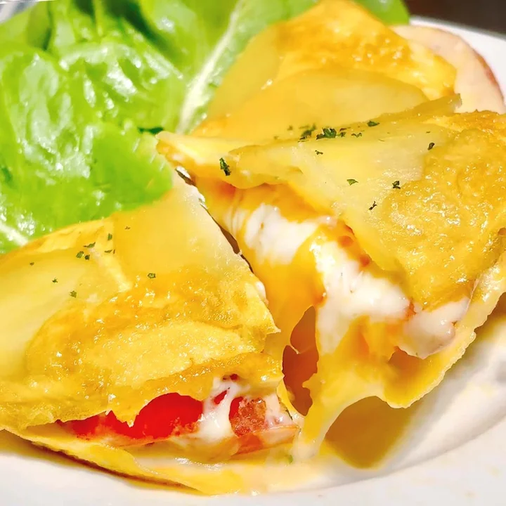 じゃがいもと卵、チーズとトマトを重ねてフライパンで焼くだけ!外はこんがり、中はふわとろで、味はまさに天才級。簡単なのにごはんにもパンにもぴったりで、これを作れば買い足す必要なし!人気のポテトチーズオムレツレシピです。