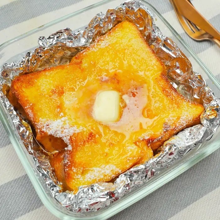フレンチトーストを極上に変身させるレシピをご紹介します!フライパンではなく、トースターでこんがりと焼くだけ!アルミホイルを使ってじわじわと蒸し上げるので、フライパンでは味わえないふわトロ食感になりますよ。今までの作り方には戻れない激ウマな蒸し焼き「フレンチトースト」レシピ。やったことない人は全員やるべき!
