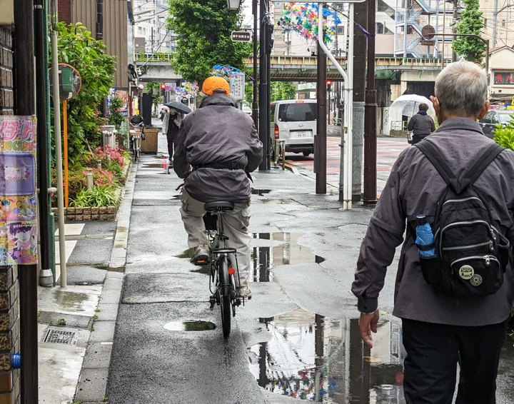この写真の道では、自転車が歩道を通行することが認められていると仮定して、実際の交通ルールを確認してみましょう。