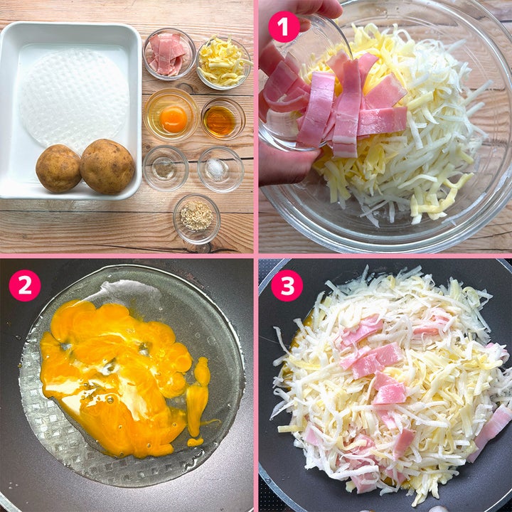 ライスペーパーでじゃがいも、卵、ベーコン、チーズを挟んでフライパンで焼くだけ!驚くほど簡単なのに激ウマの「じゃが玉ベーコンチーズライスペーパー焼き」のレシピをご紹介します。