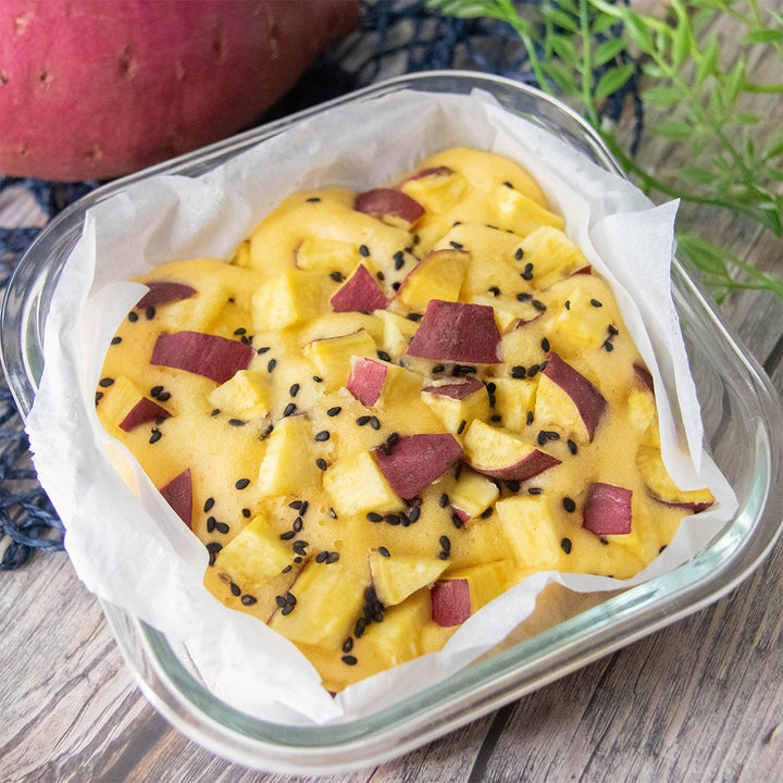 【さつまいもとホットケーキミックスで!】「買ったやつみたい」「ふわふわすぎてびっくりした」フライパンで作れる超簡単蒸しパンレシピ