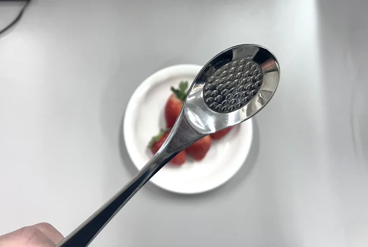「正解はいちごスプーンです。 このスプーンにはいちごをすり潰しやすくするために突起が付いています」