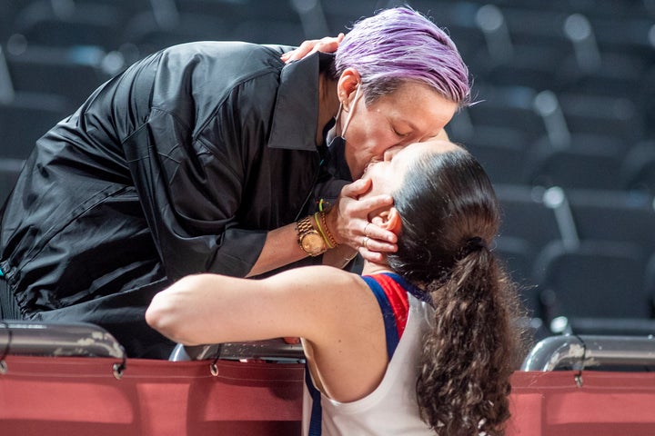 女子サッカーアメリカ代表のミーガン・ラピノー選手と女子バスケットボールのスー・バード選手が、2人で出場するのはおそらく最後になるであろうオリンピックを、キスで締めくくった。