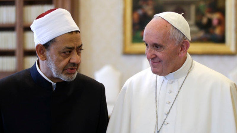 ローマ法王がイスラム教スンニ派権威と会談「私たちの出会いこそがメッセージ」