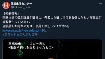 国民生活センターが「フラッシュぶんぶんゴマ」の中止を呼びかけています。破片が目に当たると重篤なけがを負う危険性があります。