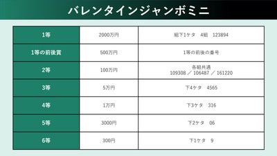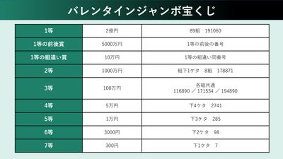 バレンタインジャンボ宝くじ当選番号。2025年の抽選結果(第1041回全国自治宝くじ)