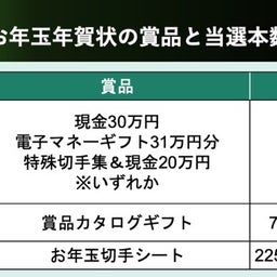 お年玉年賀状(年賀はがき)2026年の当選番号、発表はいつ?発表日、引き換え期間、1等・2等・3等の賞品は?
