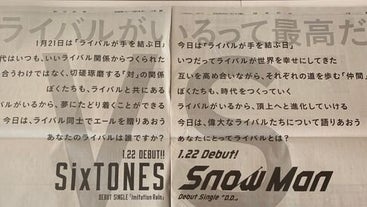 1年前の2020年1月22日にデビューを飾った2組。当時の新聞広告は繋げると一つのメッセージになるとして話題に。おめでとうございます。