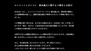 「エレカシ」ドラマー冨永、酒気帯び運転で接触事故起こし検挙。謝罪文公表