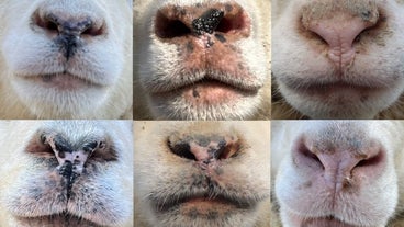 北海道のファームを訪れたサモエド・スキーくんとサモエド×ハスキーのパウくんは、体格も毛並みも自分達とそっくりの羊に出会いました。