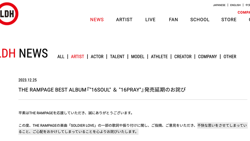 『THE RAMPAGE』新曲でLDHが謝罪。「ナチス式敬礼」など批判が殺到し、歌詞と振り付けの変更を発表