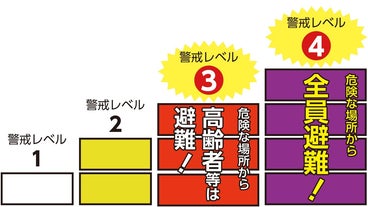 内閣府は、レベル5「緊急安全確保」の「発令を待ってはいけません!」と注意喚起しています。
