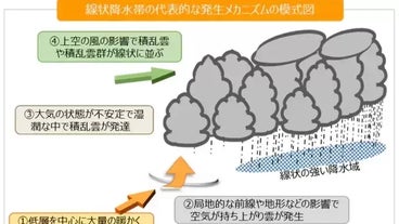 線状降水帯が発生する仕組みを分かりやすくまとめました。天気予報で「線状降水帯」を耳にした時は、大きな災害を引き起こすおそれがあるものとして、備えをするようにしてください。