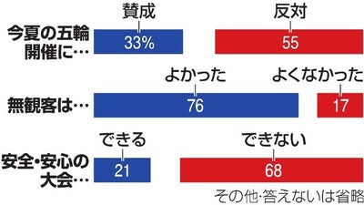 五輪反対55%、安全安心の大会「できない」68%【朝日世論調査】