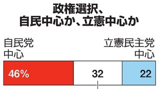 衆院選後の政権選択、自民中心がよい46% 立憲中心がよい22%【朝日世論調査】