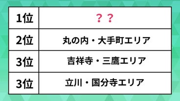 六本木・赤坂エリア、吉祥寺・三鷹エリア、立川・国分寺エリア、丸の内・大手町エリアなどがランクインしました。