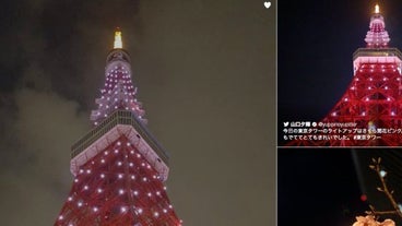 Twitter上には、ピンク色に彩られた東京タワーの画像が投稿されている。