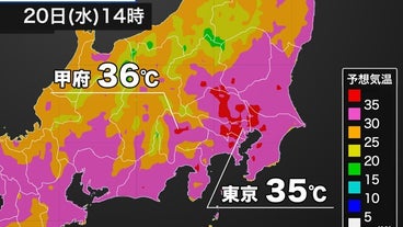 東京都心など最高気温が35℃以上の猛暑日となるところもあり、各地で厳しい暑さが戻ります。こまめな水分補給など熱中症対策が欠かせません。