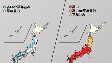 気温は平年より高いものの、北日本や東日本・西日本の日本海側は気圧の谷の影響で、太平洋側は湿った空気の影響で、平年より晴れる日は少ない予想です。